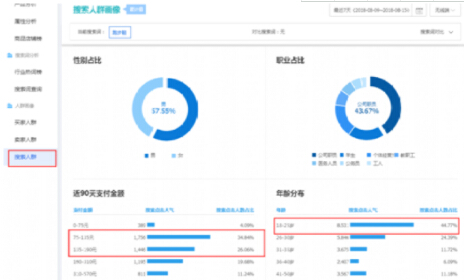 拿跑步鞋为例,我们用到的工具是3600/年的生意参谋 – 市场行情 专业版,点击搜索人群,查看数据,如图4: