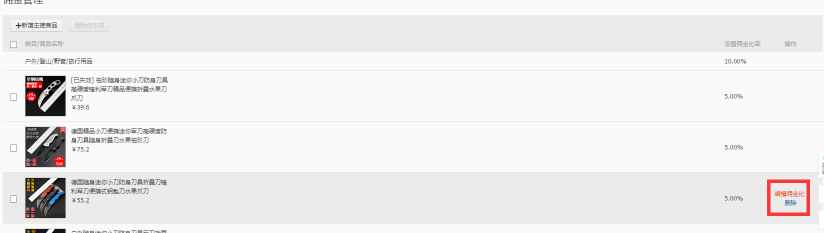 选择产品后设置佣金比。设置佣金的时候可以设置高点,以便于后期的定向招商。后期我们还可以修改编辑佣金比,任何一词淘客佣金的修改都会在晚上24点生效。如果后期这个宝贝不想做了我们就可以删掉它。