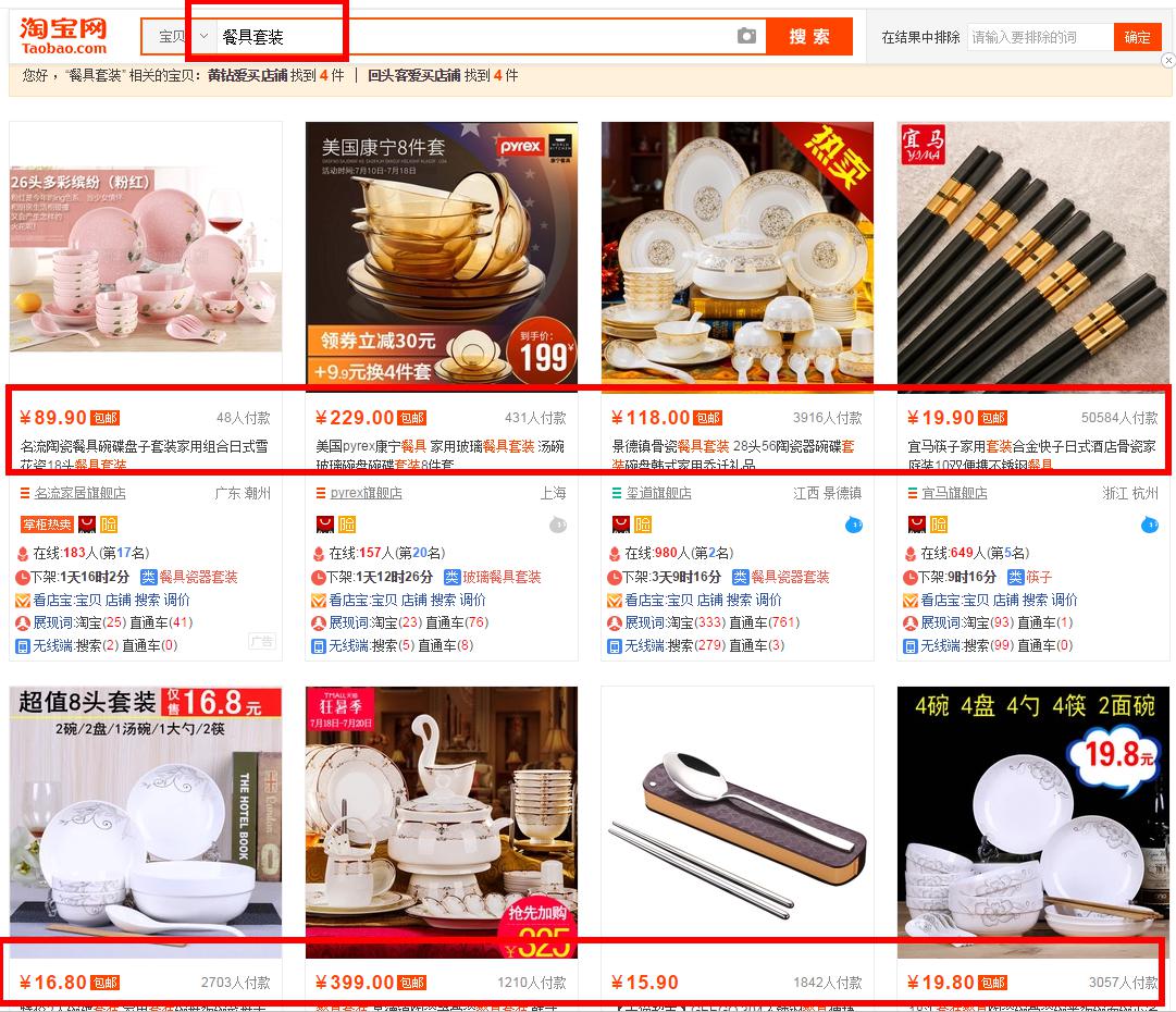 确实是转化下降这会影响到这个词的引流情况,我们自己去搜索自己的这个词,去看下为什么转化下降了。结果发现这个词搜索出来客单价都比我低,所以转化被竞争影响到了,那么我们该怎么做?